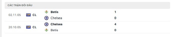 Trong quá khứ trình độ giữa Real Betis và Chelsea khá cân bằng với nhau, thật vậy khi mà tổng cộng 2 lần gặp nhau trong quá khứ thì mỗi bên cũng đã có được 1 chiến thắng theo kèo châu Âu được niêm yết. Bên phía Real Betis họ trong thời gian qua thể hiện được phong độ không tồi khi chỉ thua 2 trong khi thắng 4 và hoà 4 theo kèo châu Âu được niêm yết, bởi vậy mà không loại trừ khả năng bất phân thắng bại theo kèo châu Âu được niêm yết ở trận đấu cuối cùng này.