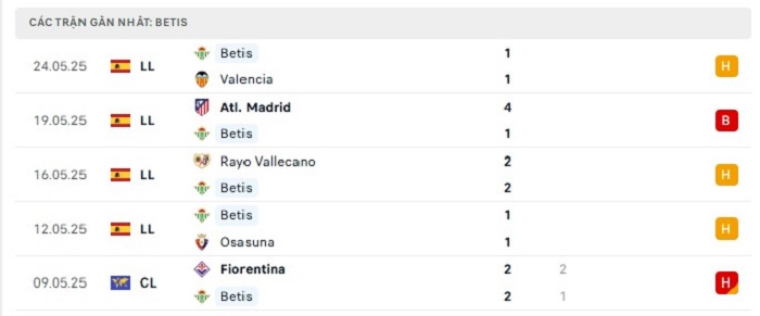 - Phong độ Real Betis