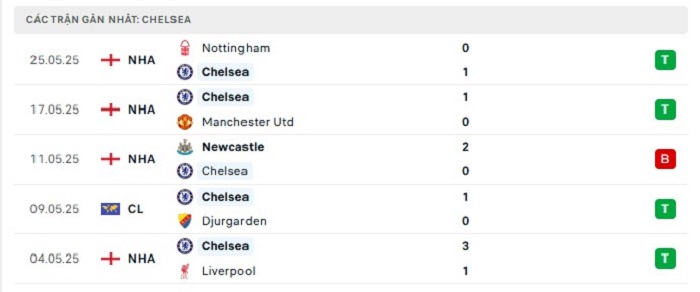 - Phong độ Chelsea