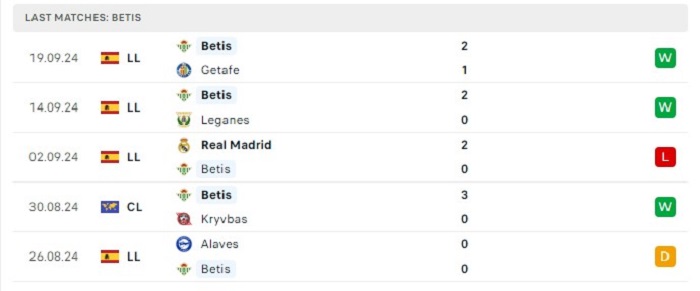 - Phong độ Real Betis