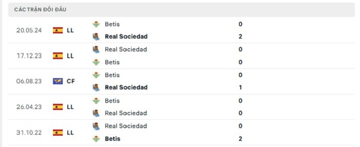 Bảng bóng đá trận đấu Real Soceidad vs Real Betis