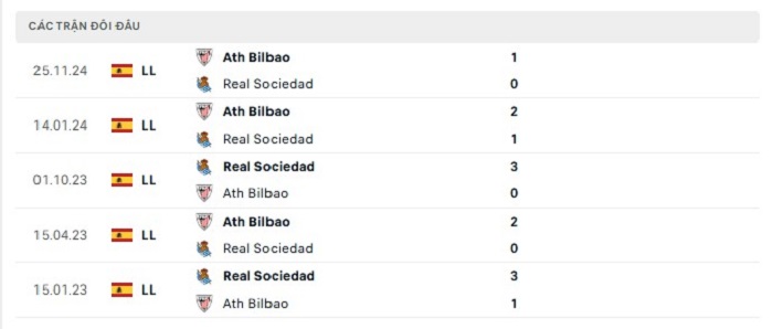 Phong độ gần đây Real Sociedad vs Athletic Bilbao