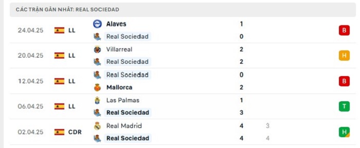- Phong độ Real Sociedad