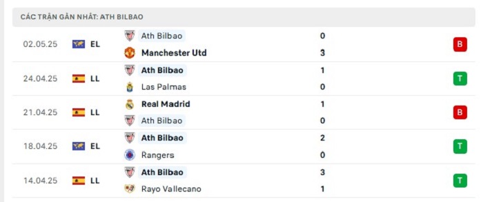 - Phong độ Athletic Bilbao