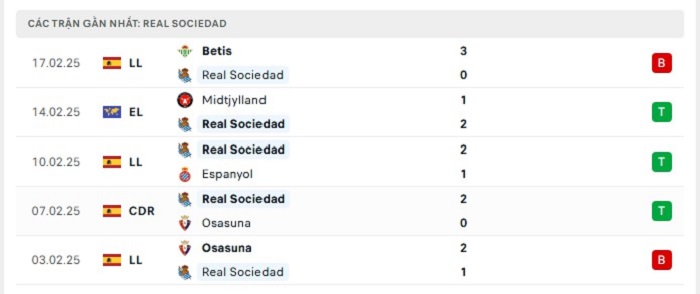 • Phong độ Real Sociedad