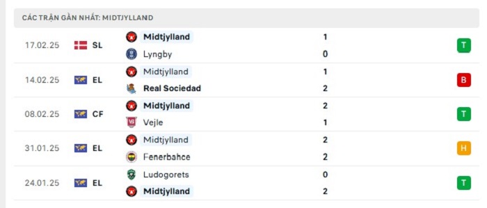 Phong độ gần đây Real Sociedad vs Midtjylland