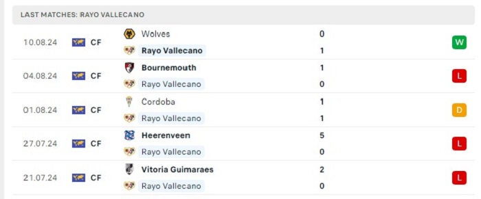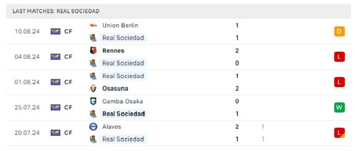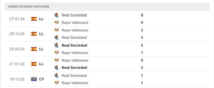 Phong độ gần đây Real Sociedad vs Rayo Vallecano