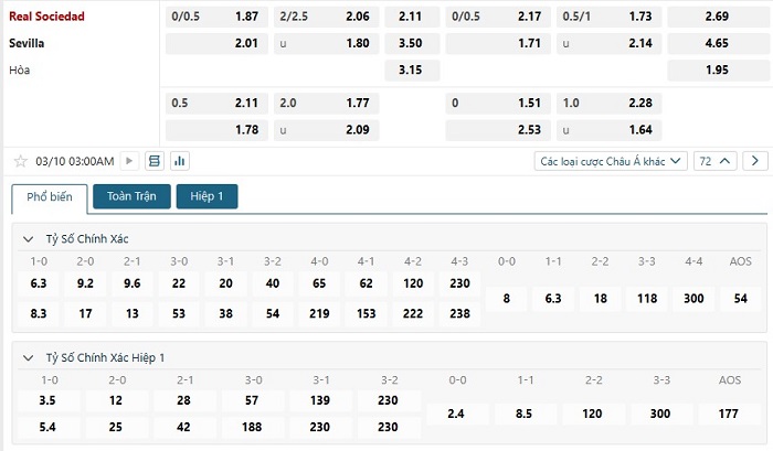 Soi kèo tỷ số Real Sociedad vs Sevilla
