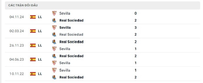 Thực lực giữa Real Sociedad và Sevilla trong quá khứ cũng không có quá nhiều chênh lệch với nhau, Real Sociedad thắng 4, hoà 3 thì cũng có 3 lần phải nếm mùi thất bại trước đối thủ này. Thời gian vừa qua Sevilla đang thể hiện một bộ mặt thi đấu đầy khó chịu của mình khi có tới 5 trận đấu hoà kèo châu Âu trong 10 trận đấu gần nhất của họ trên mọi đấu trường, do vậy mà không loại trừ khả năng chia điểm của hai đội ở lần gặp nhau sắp tới đây của họ.