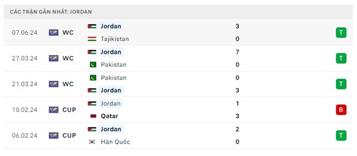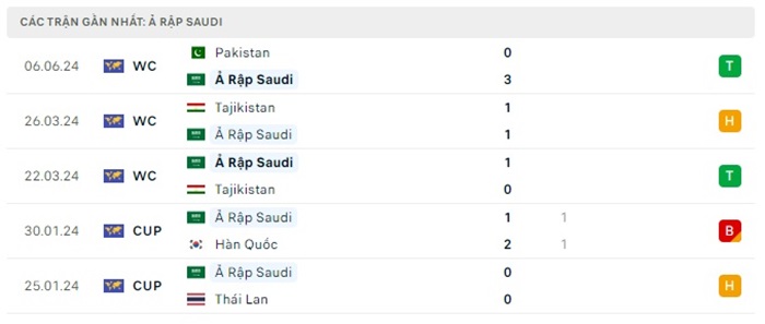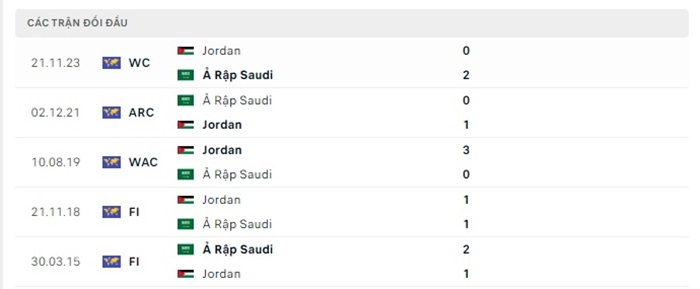 Phong độ gần đây Saudi Arabia vs Jordan