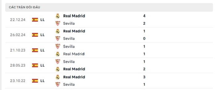 Phong độ gần đây Sevilla vs Real Madrid