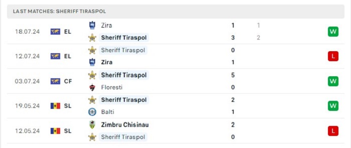 Phong độ gần đây Sheriff Tiraspol vs Elfsborg