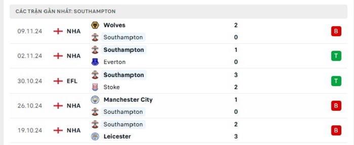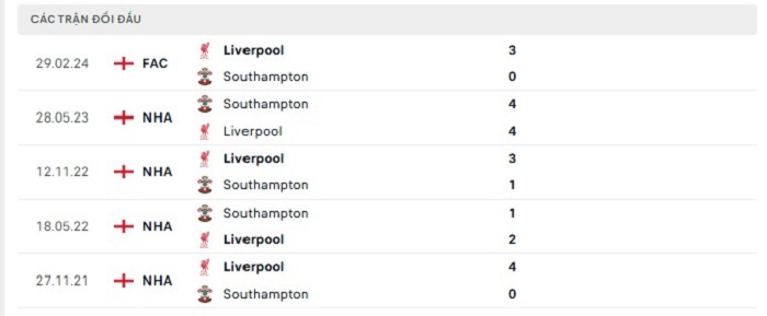 Bảng bóng đá trận đấu Southampton vs Liverpool