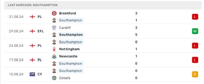 - Phong độ Southampton