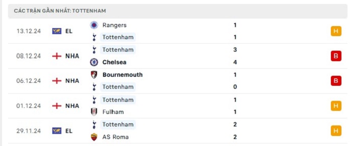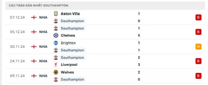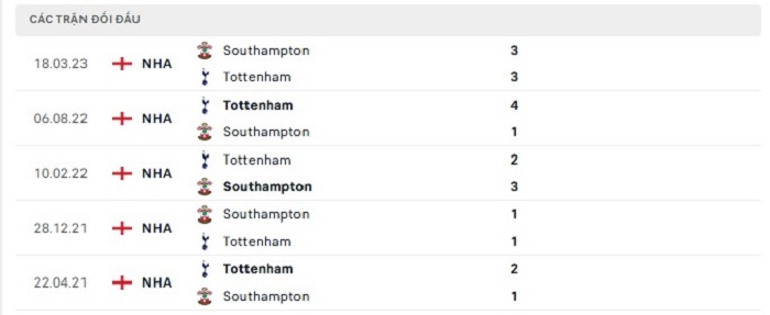 Bảng bóng đá trận đấu Southampton vs Tottenham