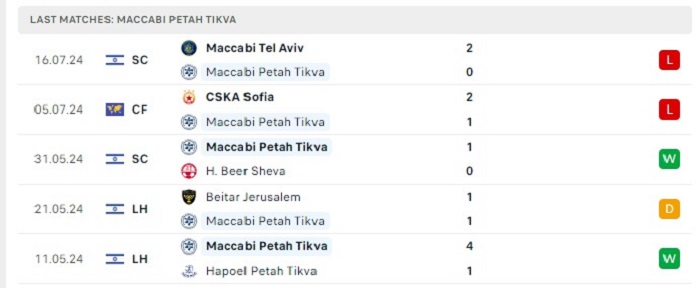 - Phong độ Maccabi Petah Tikva