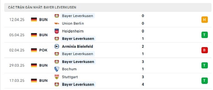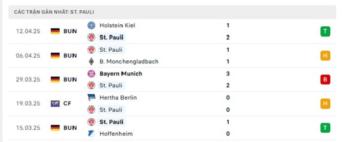 Phong độ gần đây St. Pauli vs Bayer Leverkusen