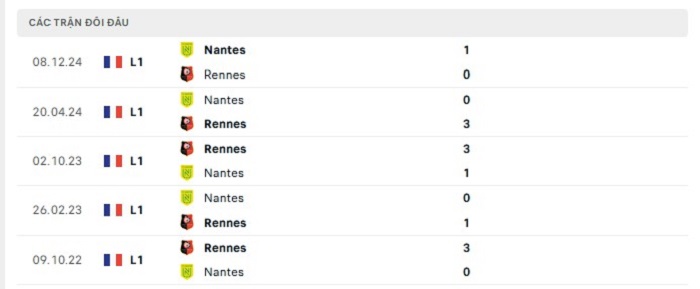 Phong độ gần đây Stade Rennais vs Nantes