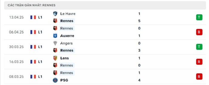 - Phong độ Stade Rennais