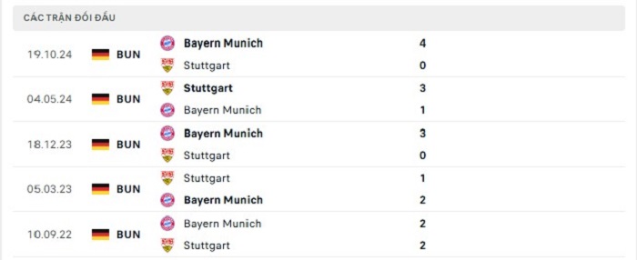 Bảng bóng đá trận đấu Stuttgart vs Bayern Munich