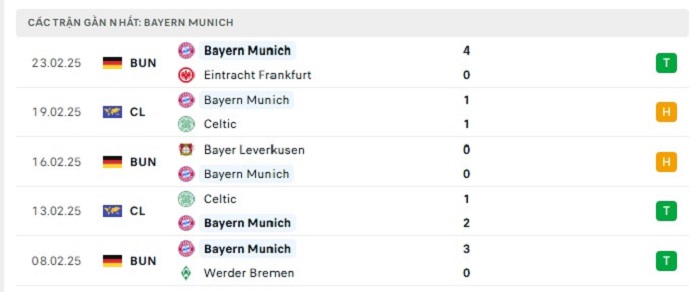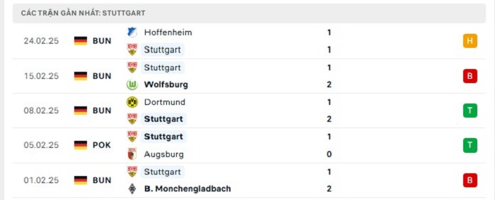 Phong độ gần đây Stuttgart vs Bayern Munich