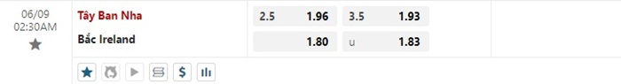 Bảng tỷ lệ kèo bóng đá trận đấu Tây Ban Nha vs Bắc Ireland