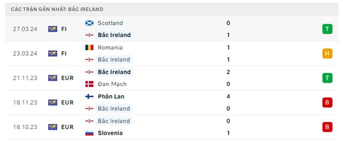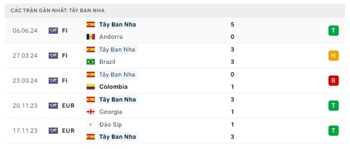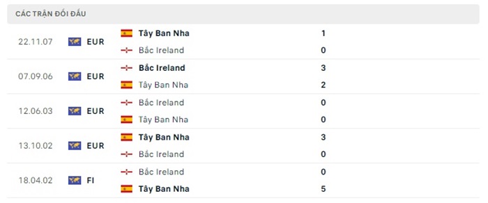 Phong độ gần đây Tây Ban Nha vs Bắc Ireland
