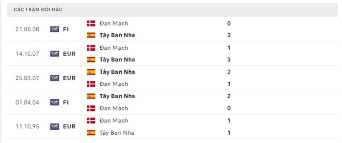 Bảng bóng đá trận đấu Tây Ban Nha vs Đan Mạch