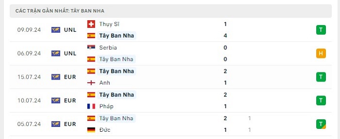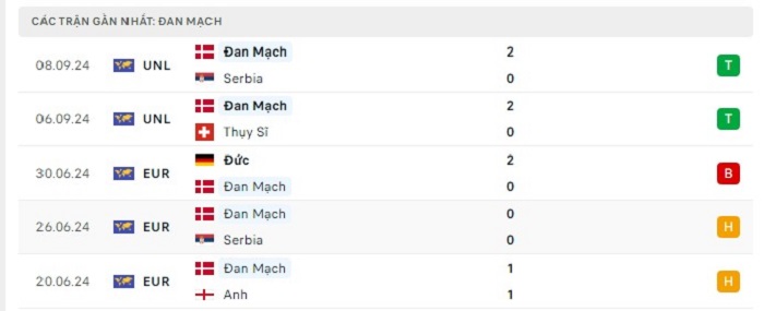 Phong độ gần đây Tây Ban Nha vs Đan Mạch