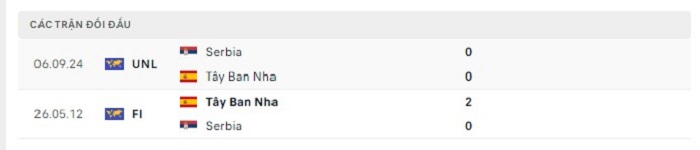 Bảng bóng đá trận đấu Tây Ban Nha vs Serbia