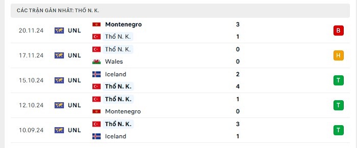 Phong độ gần đây Thổ Nhĩ Kỳ vs Hungary