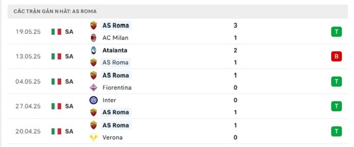 - Phong độ AS Roma