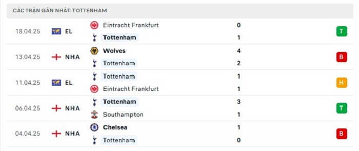 Phong độ gần đây Tottenham Hotspur vs Nottingham