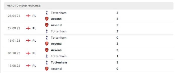 Phong độ gần đây Tottenham vs Arsenal