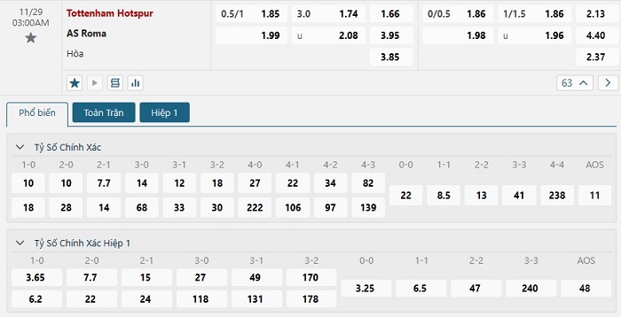 Soi kèo châu Á, kèo chấp Tottenham vs AS Roma