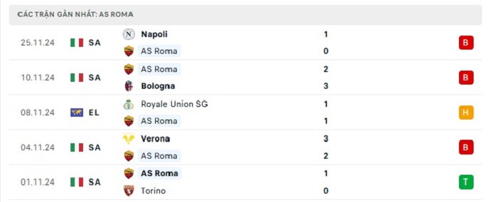 Bảng bóng đá trận đấu Tottenham vs AS Roma