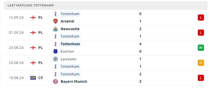 - Phong độ Tottenham