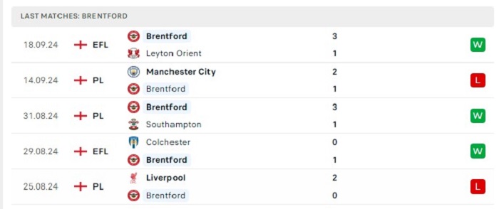 - Phong độ Brentford