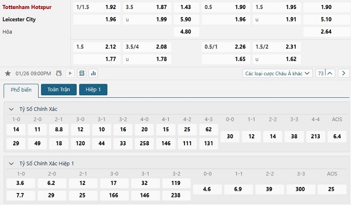 So với Leicester City thì Tottenham ở thời điểm hiện nay vẫn đang được đánh giá cao hơn nhiều, điều này đang thể hiện được thông qua mốc kèo châu Á được niêm yết khá cao hiện nay. Thực tế với Tottenham thì sân nhà vẫn sẽ là những điểm hy vọng rất lớn với họ trong khi với Leicester City phong độ trên sân khách của họ ở thời điểm hiện tại thực sự đáng lo ngại, do vậy mà đây sẽ là cơ hội rất lớn để Tottenham có thể tìm lại được niềm vui chiến thắng cho mình.