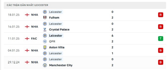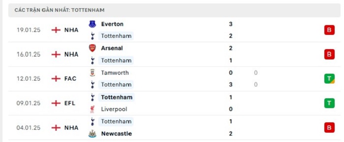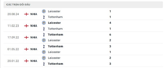 Bảng bóng đá trận đấu Tottenham vs Leicester City