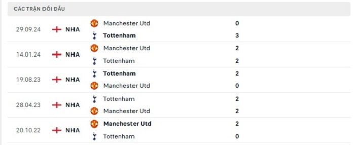Bảng bóng đá trận đấu Tottenham vs Manchester United