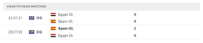 Tại 2 lần gặp nhau trước đây của hai đội U23 Tây Ban Nha thắng 1 và hoà 1 trước U23 Ai Cập, điều này cũng đã phần nào đó thấy được sự chênh lệch về mặt chuyên môn của hai đội tuyển này. Hơn nữa với U23 Tây Ban Nha họ đang thể hiện được tinh thần và khả năng thi đấu ấn tượng của mình trên đất Pháp hè này, do đó mà một thắng lợi theo mức kèo châu Âu với U23 Tây Ban Nha cũng không phải là không thể thực hiện được.
