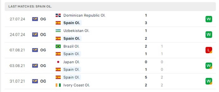 Phong độ gần đây U23 Tây Ban Nha vs U23 Ai Cập