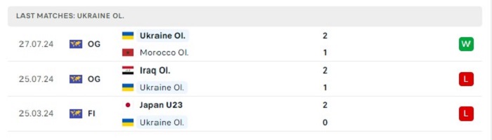 Phong độ gần đây U23 Ukraine vs U23 Argentina
