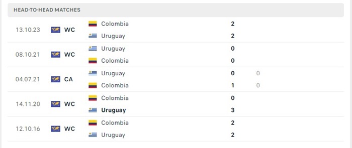 Thống kê có thể thấy được 2 trong 3 lần gặp nhau gần đây của hai đội đã khép lại với tỷ số 0-0 chung cuộc, điều này cũng đã thấy được lối chơi đầy chắc chắn mà cả hai đội đã tạo nên. Hàng thủ cũng chính là điểm mạnh của cả Uruguay và Colombia tại sân chơi Copa America tại giải đấu này do đó mà khó có thể kỳ vọng tới một trận đấu bùng nổ về mặt tỷ số của cả hai đội trận này.