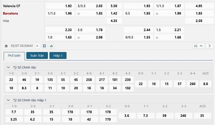 Soi kèo châu Á, kèo chấp Valencia vs Barcelona