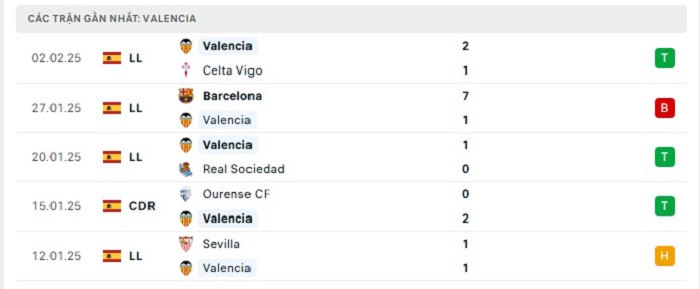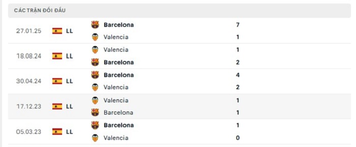 Bảng  bóng đá trận đấu Valencia vs Barcelona