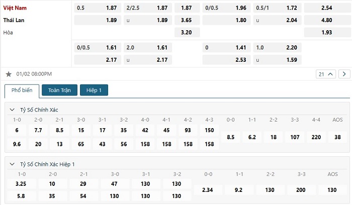 Soi kèo tỷ số Việt Nam vs Thái Lan