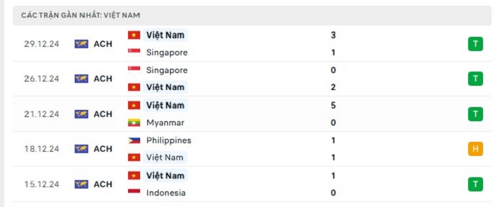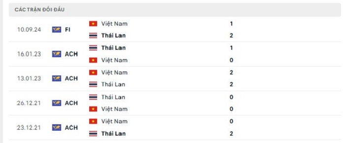 Phong độ gần đây Việt Nam vs Thái Lan