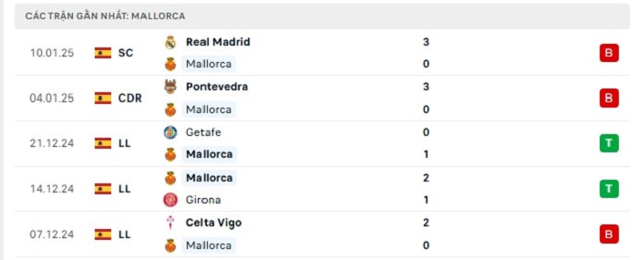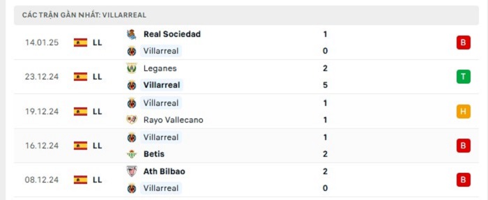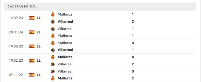 Bảng bóng đá trận đấu Villarreal vs Mallorca